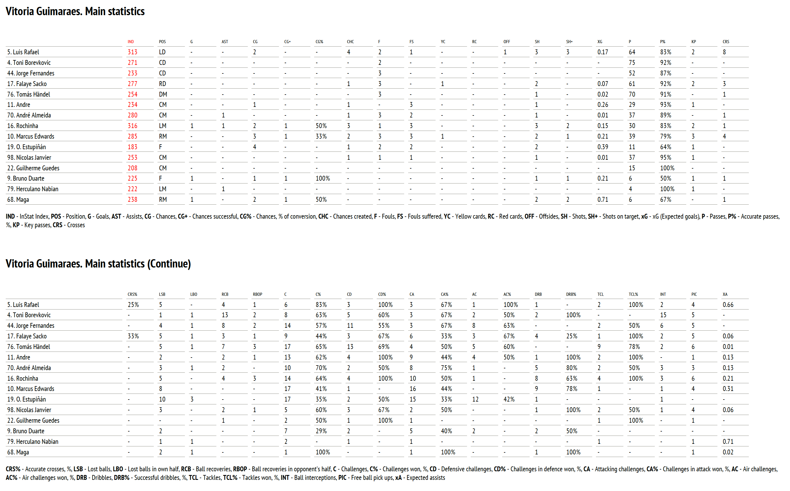 *dados retirados do InStat relativamente à performance da equipa minhota, no encontro de ontem à noite.